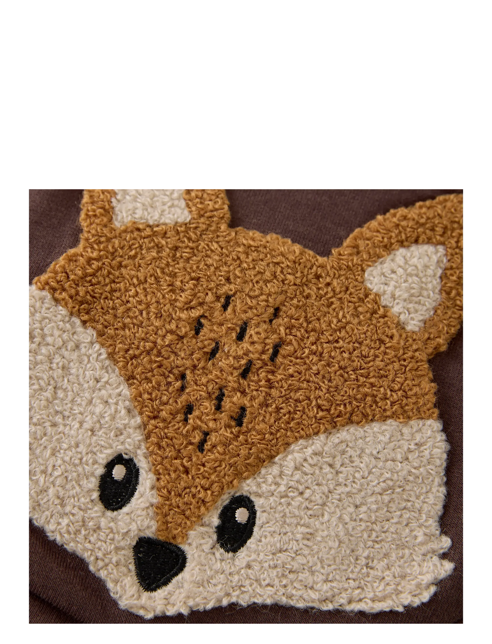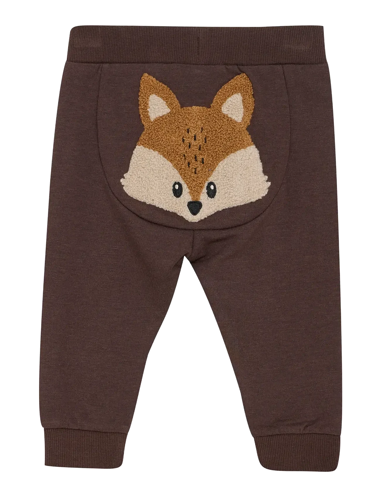 Sweatpants with a cute fox motif on the back. Featuring an elastic waistband and ankle cuffs, a decorative faux fly, and buttons at the front. Make sure to check out the matching top!