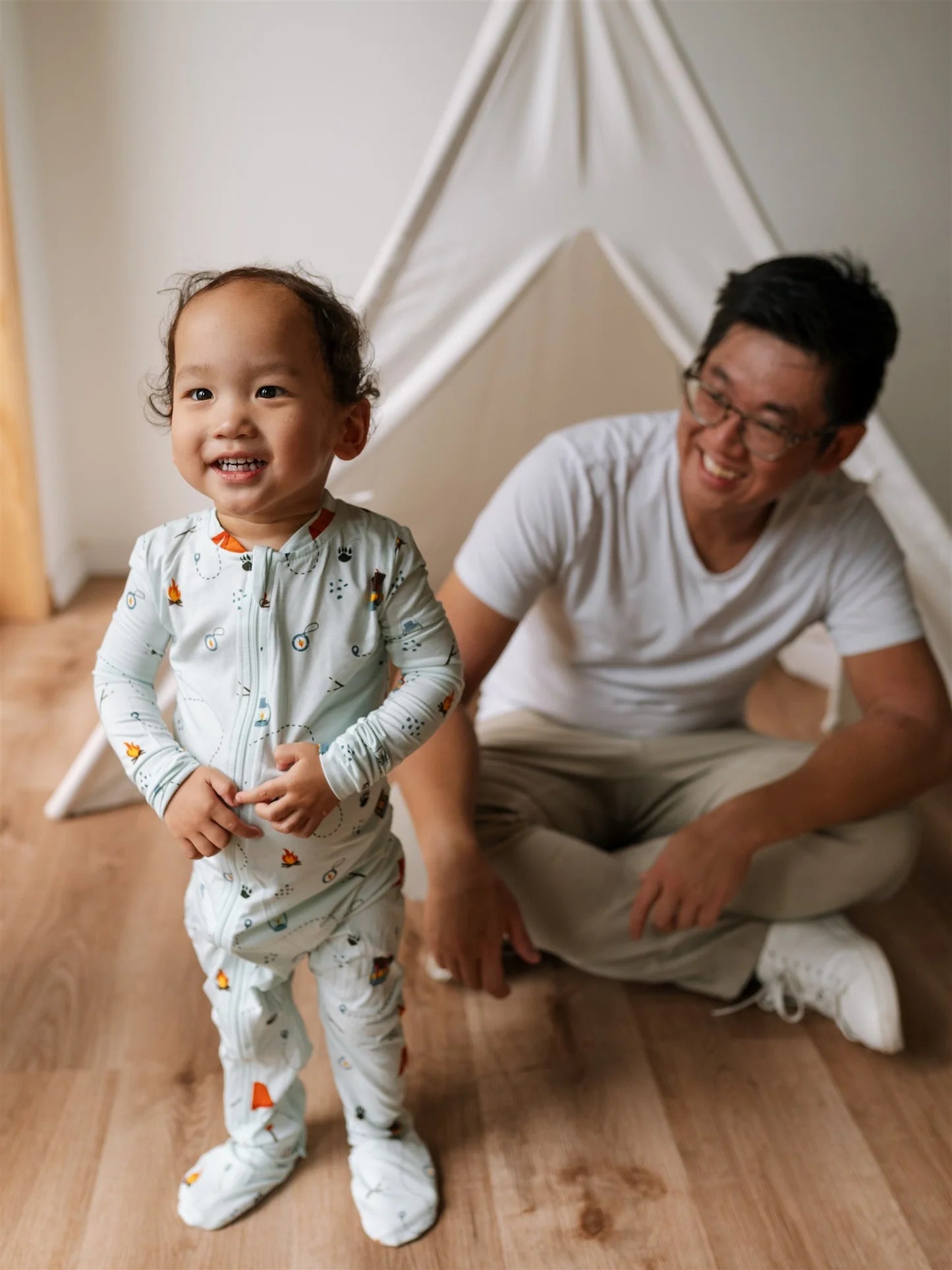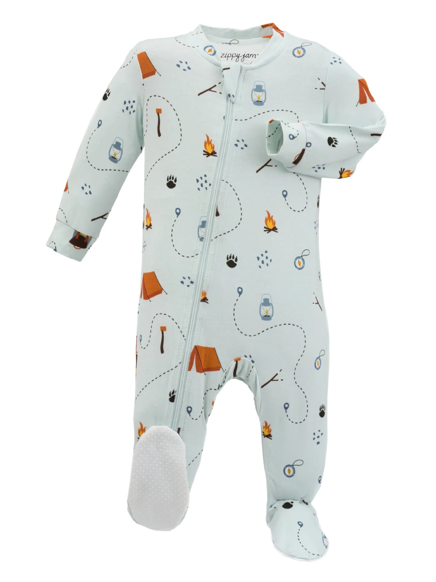 Embark on a wilderness adventure in Zippy Jamz's Tents & Tranquility. Featuring tents, campfires, and roasting marshmallows (of course!), this print captures the magic of the outdoors for your little explorer!