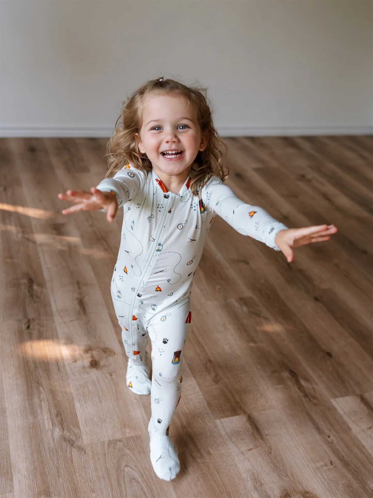 Get ready for bed in no time with the front zipper for dressing, while the inseam zipper makes diaper changes lightning fast.