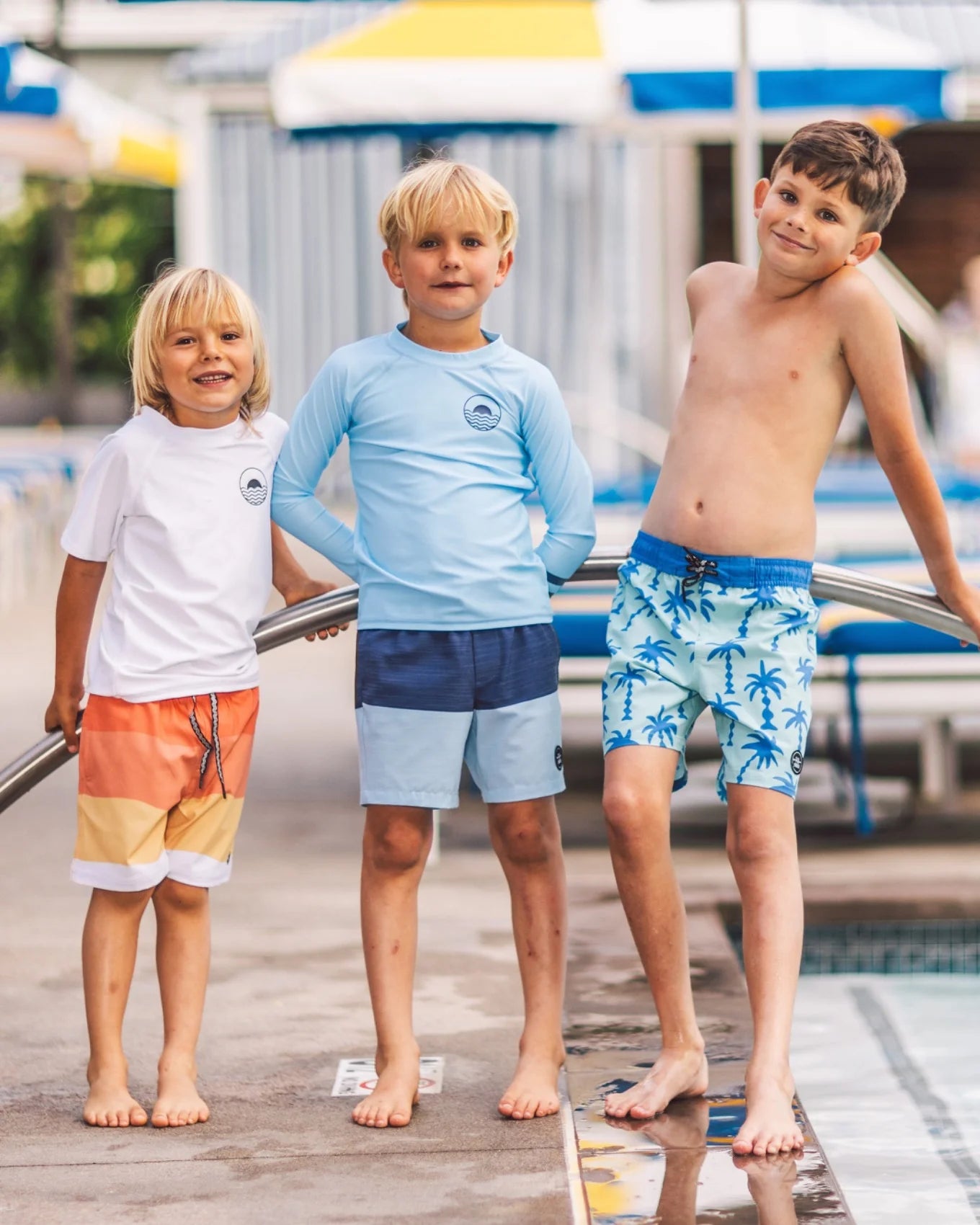 A classic board short with a contrasting waistband and back pocket. These shorts feature an elastic waistband and a drawcord for an easy fit. Made with 4-way stretch fabric with quick drying comfort.