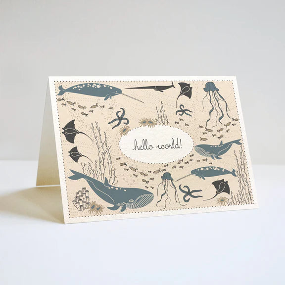 Celebrate the wonder of both our littlest AND biggest explorers with these hand-drawn cards inspired by the awesome creatures in the deep blue sea. Printed on plush cotton paper these cards are pure luxury and style. The blank interior encourages a deep dive into your own imagination!