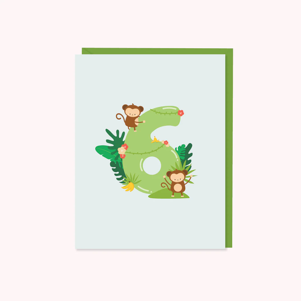Write a very special six year old a handwritten birthday wish in this quirky little monkey note card!