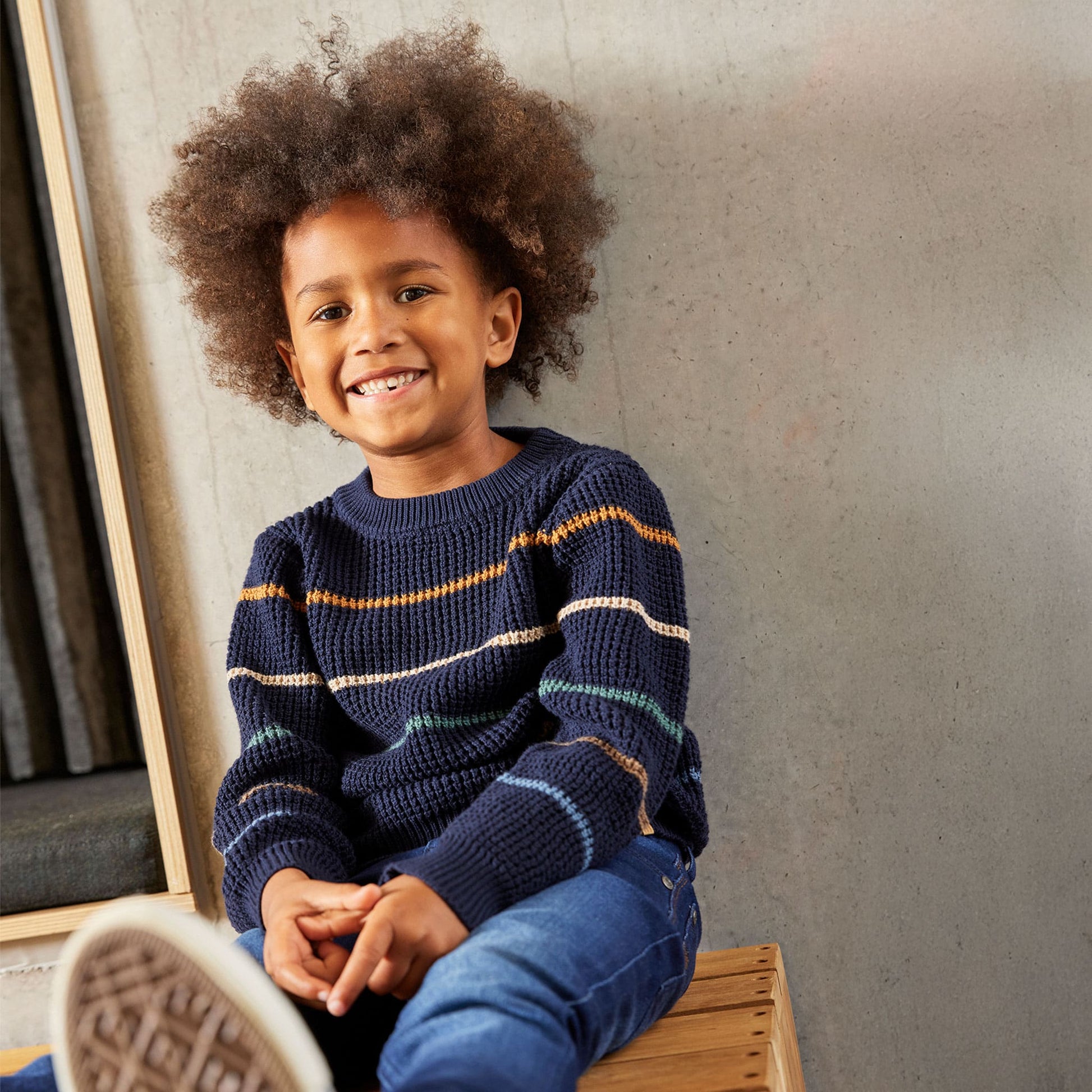 Comfy and not too heavy, this cotton knit sweater is perfect for the autumn weather.
