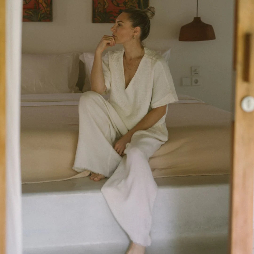 Note that these pieces are made from natural materials, and may vary in shade from piece to piece. The dyed Crinkle products are garment-dyed, which means they're sewn and then dyed and washed. This creates a vintage-style distressed look.