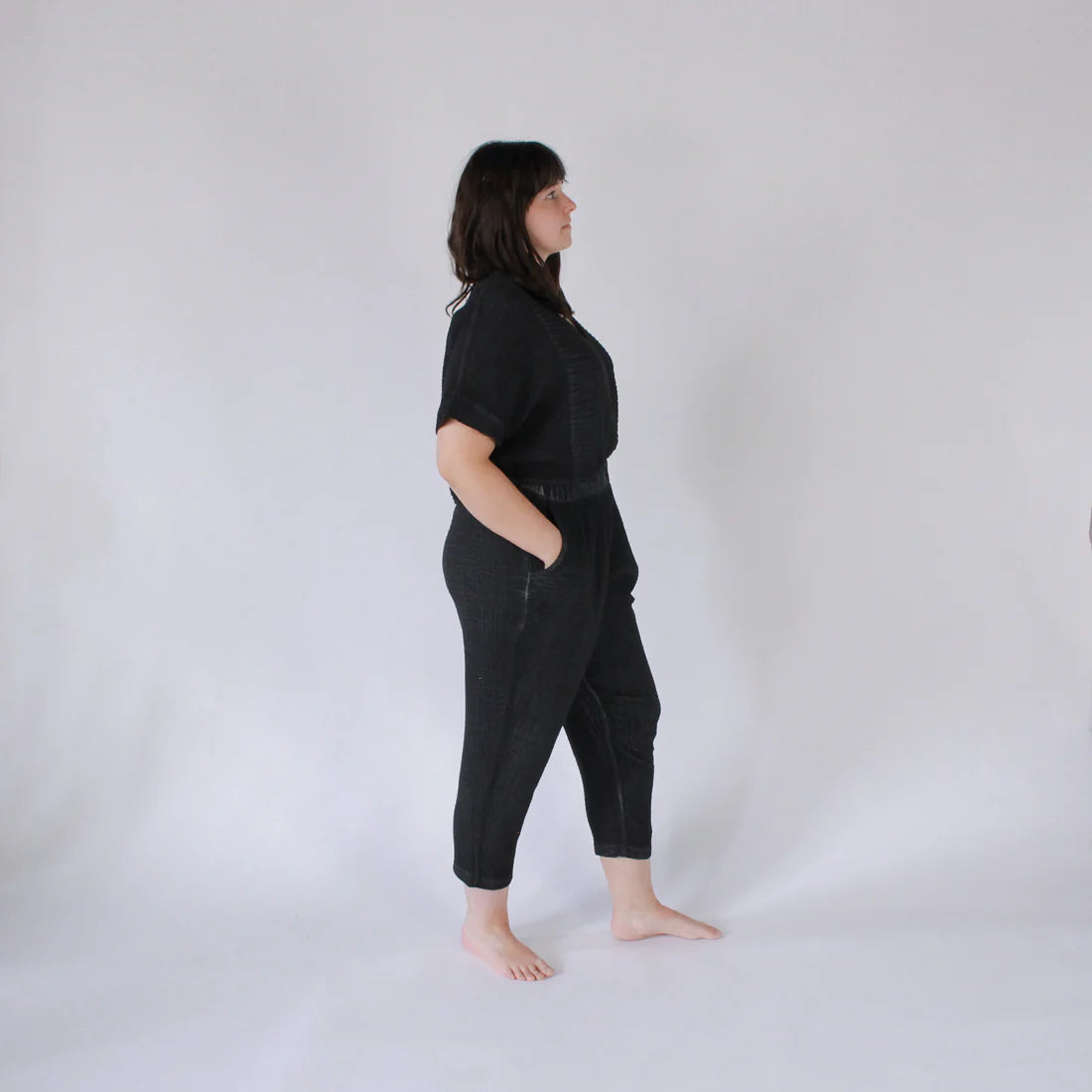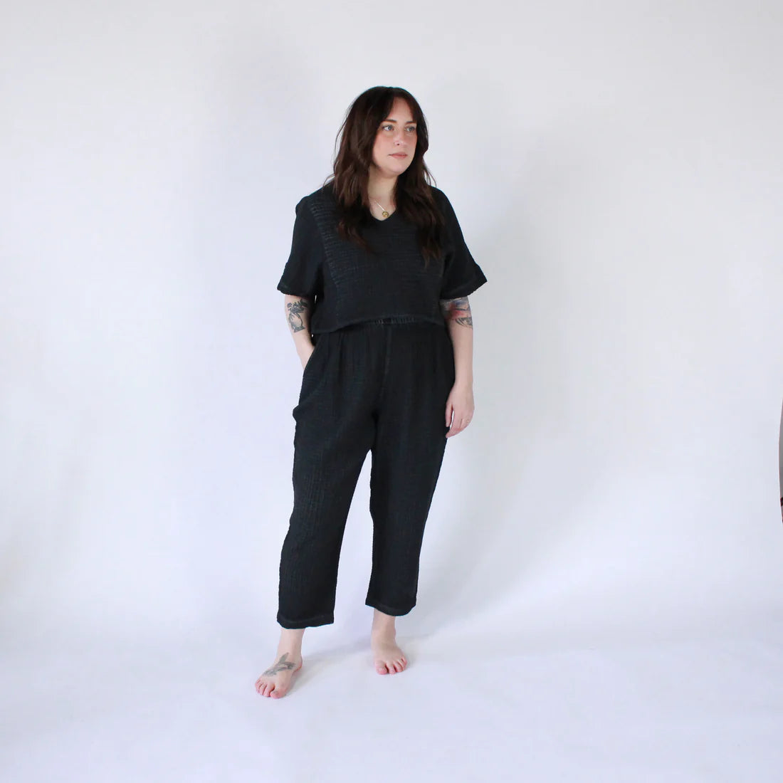 Crinkle Cotton Slouchy Pant - Washed Black (O/S)