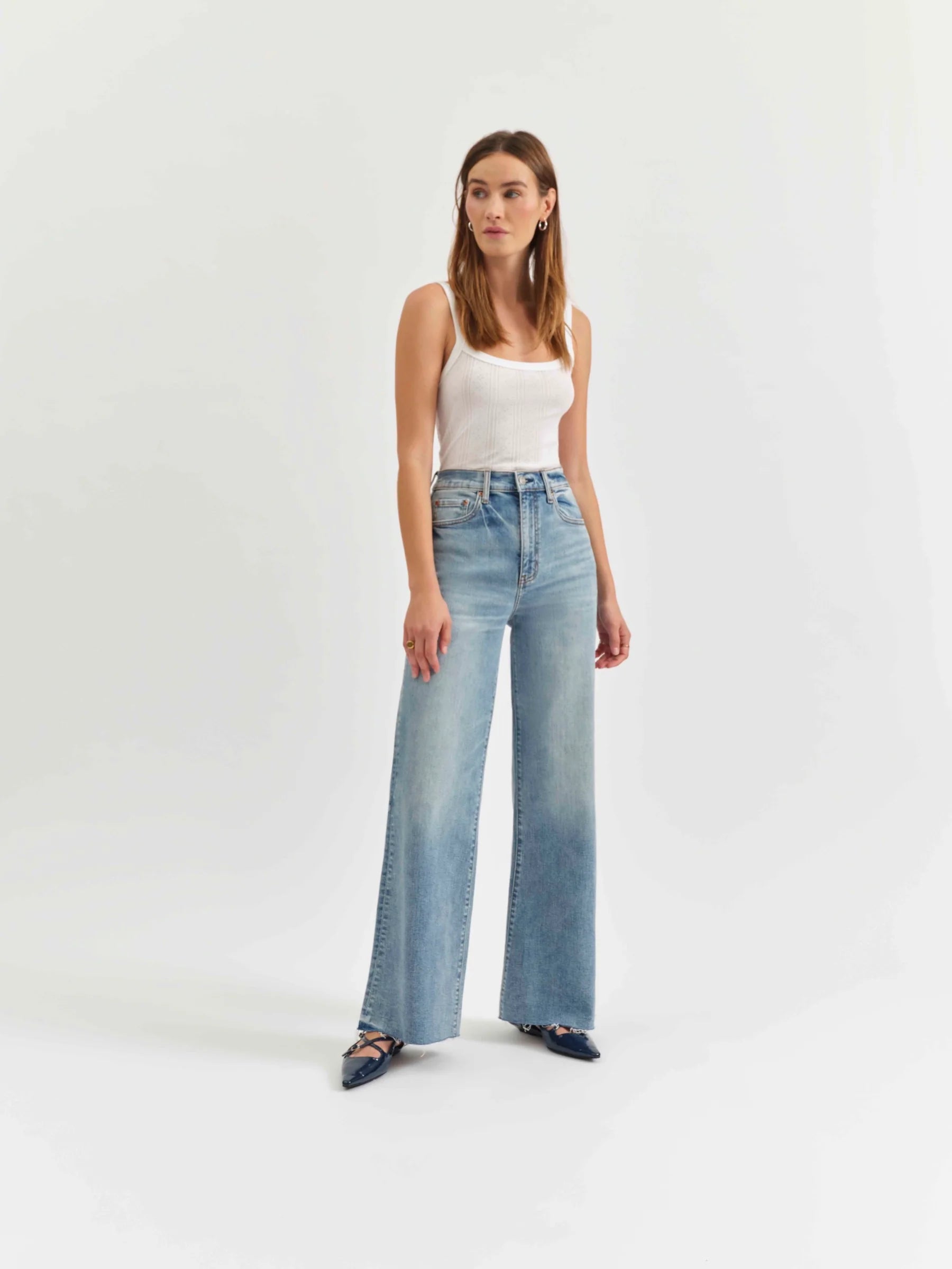 Far Out is a baggy and modern silhouette in a versatile light to medium wash with scissor cut hems. Constructed in our Just Right denim, it makes every pair look like an authentic vintage fit - it's mostly rigid but yields to your body in all the right ways.