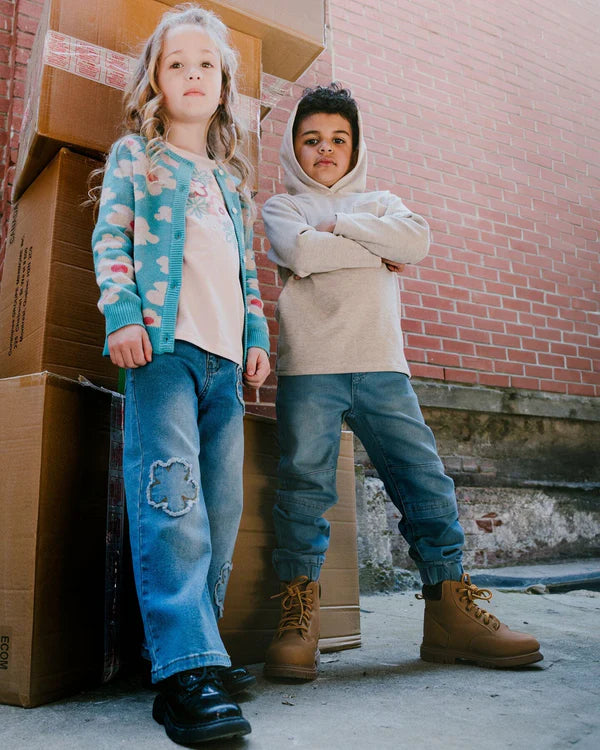 With the look of jeans and the feel of sweatpants, they’re going to want to wear these French terry joggers on repeat! Made from stretch French terry fabric with a drawstring waistband, these pull-on jogger pants feature scoop front pockets, seamed knee panels, and elastic ankles for total comfort.