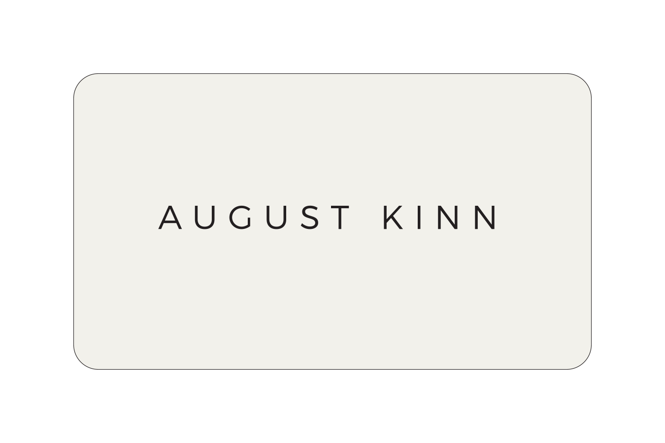 Physical (plastic) August Kinn gift cards are sold only in-store. Both electronic and physical Gift Cards can be redeemed either in-store or at augustkinn.com