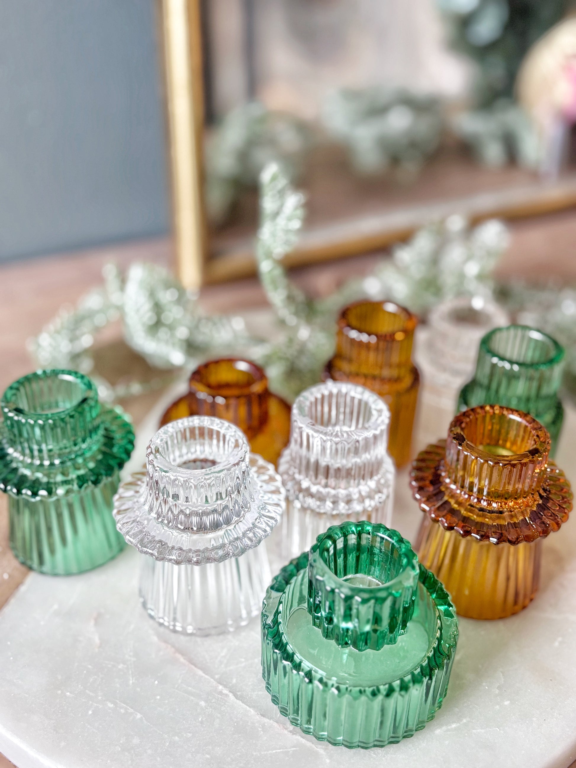 These glass candle holders pair perfectly with a set of taper candles. Style them together for the perfect holiday tablescape!