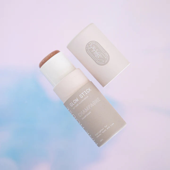 Enhance your natural glow with these multi-use, creamy Glow Sticks. These Glow Sticks have a slight shimmer that gives skin an instant, radiant glow. Buildable in nature, they can be used for that no-makeup makeup look on bare skin or layered on top of foundation for a bold look. Completely natural, vegan, and cruelty-free, this product is infused with three types of oils to keep skin moisturized while giving a dewy finish. Champagne is a universally flattering shade that creates a warm, sun-kissed glow. A deep gold tone with a pearlescent finish, it gives cheeks a luminous pop while letting your natural beauty shine through.