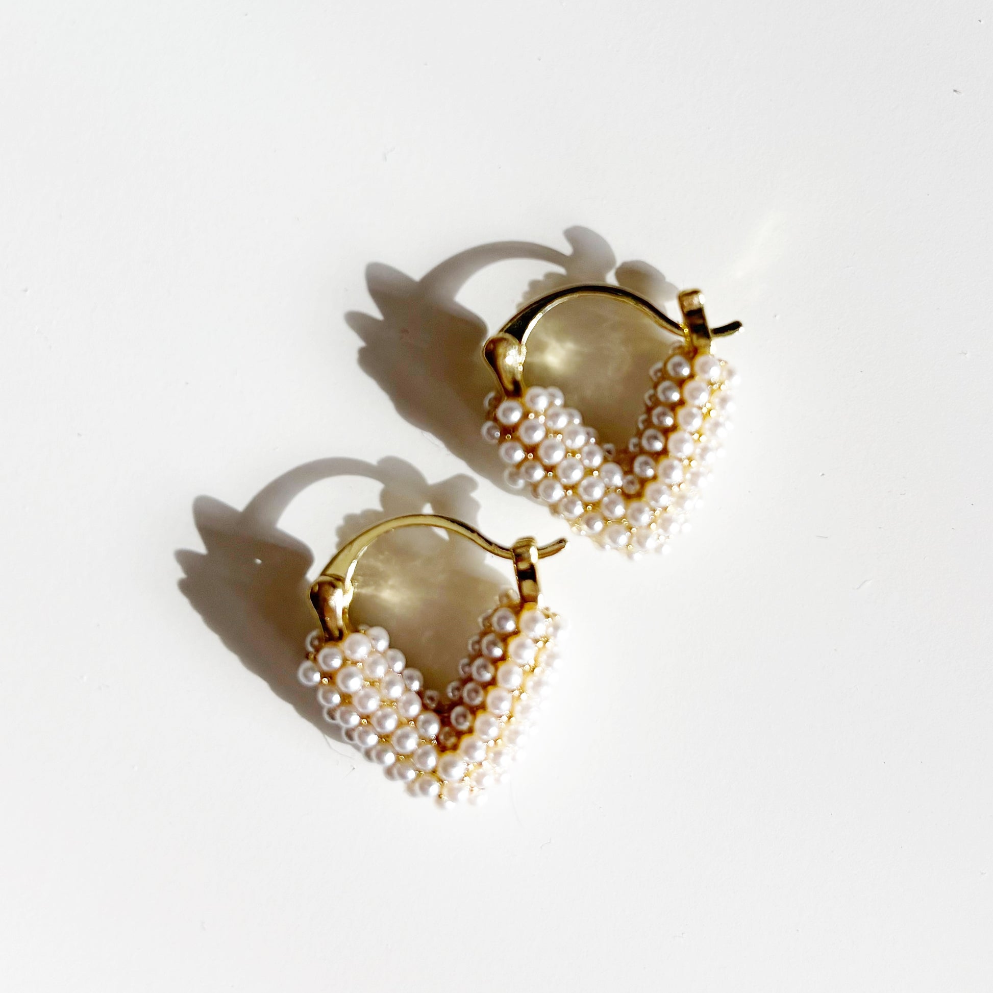 Gold Pearl Heart Earrings
