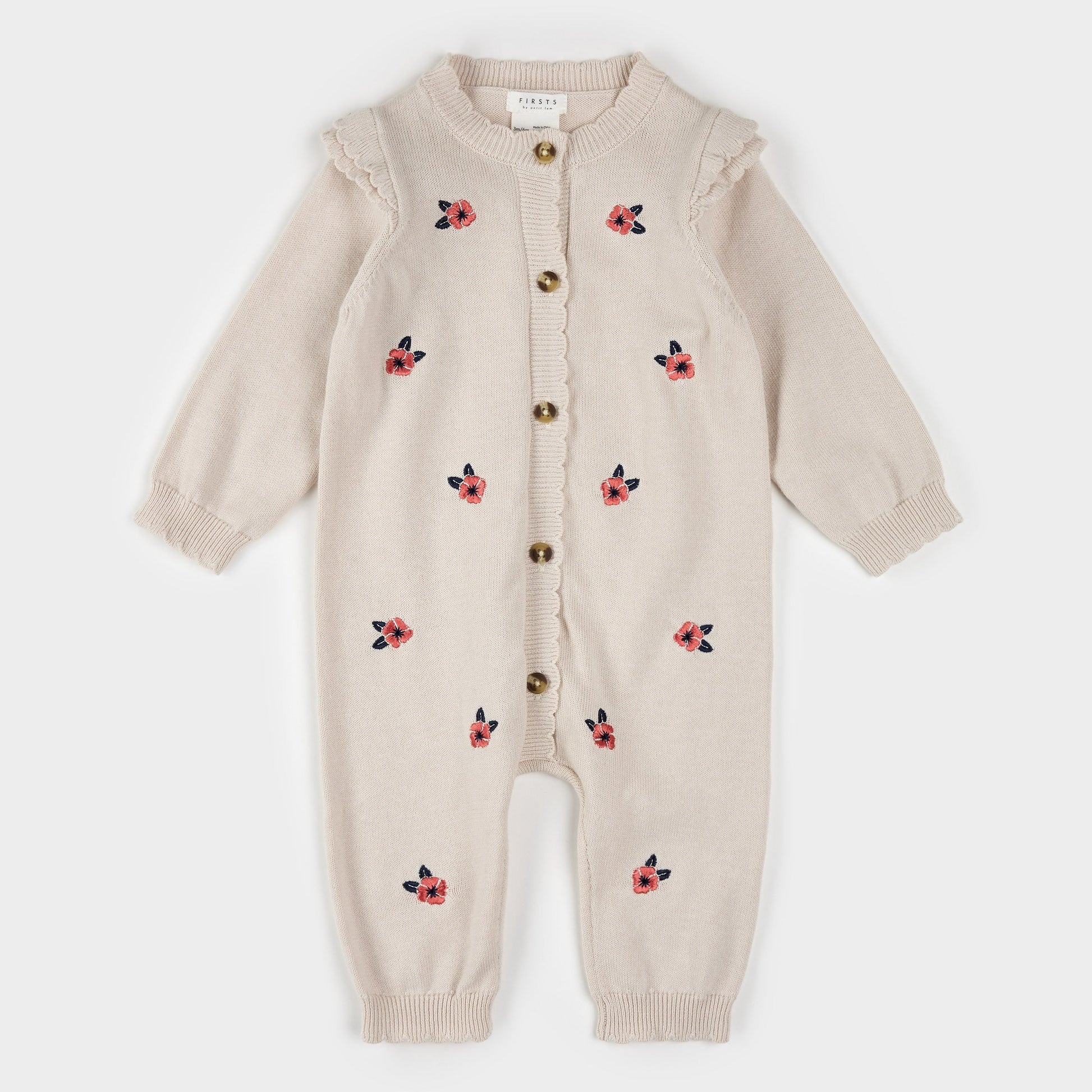 This charming, vintage-inspired playsuit is made from a cozy jersey knit and finished with a Poppy design down the front. The timeless piece is perfect for passing down through little wardrobes and there’s a coordinating bonnet available to complete the look. With buttons down the front, it’s easy to put on and remove, allowing her to stay warm and on the move as she pleases.