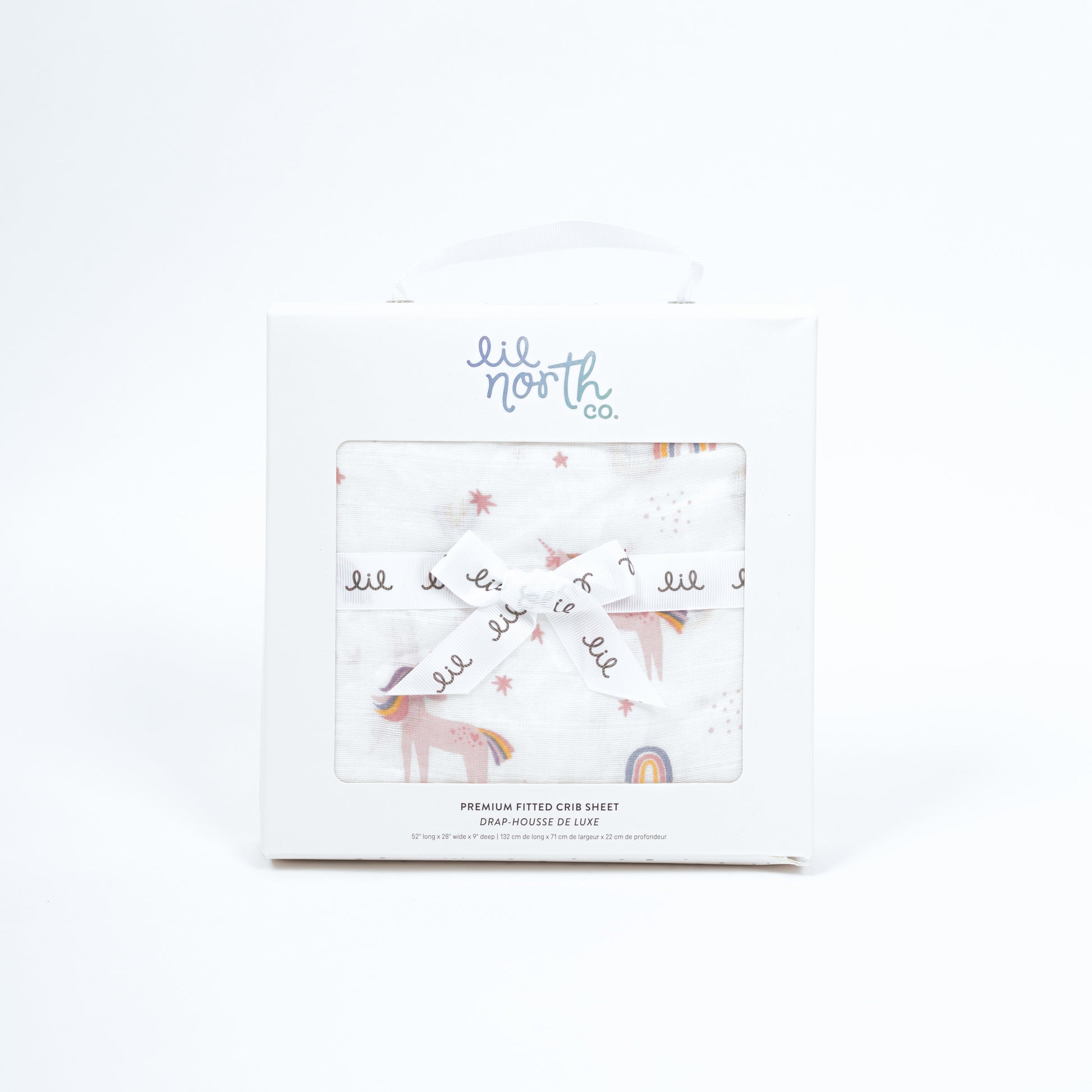 Muslin Fitted Crib Sheet - Bright Unicorn