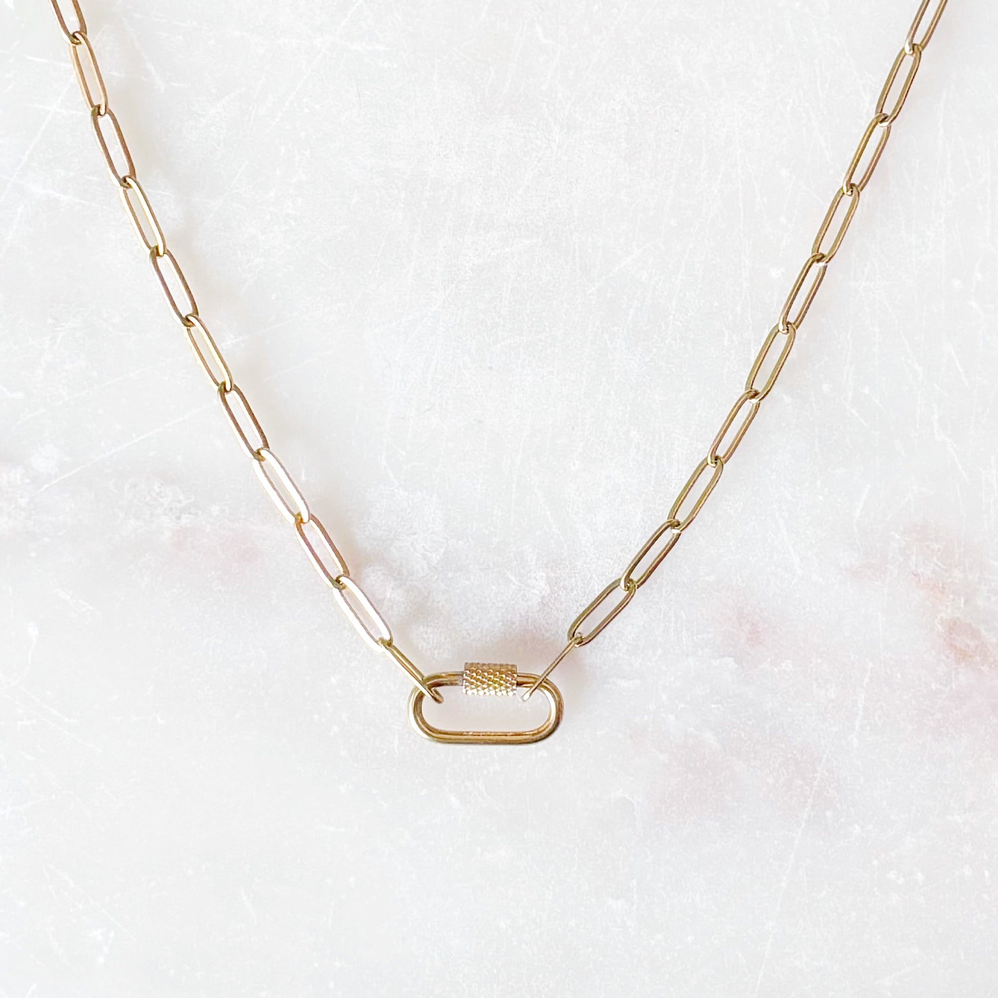 This paperclip gold plated necklace is perfect for adding charms and making your own. With the carabiner feature you can add as many charms as you want and customize your necklace to represent your own personal style!