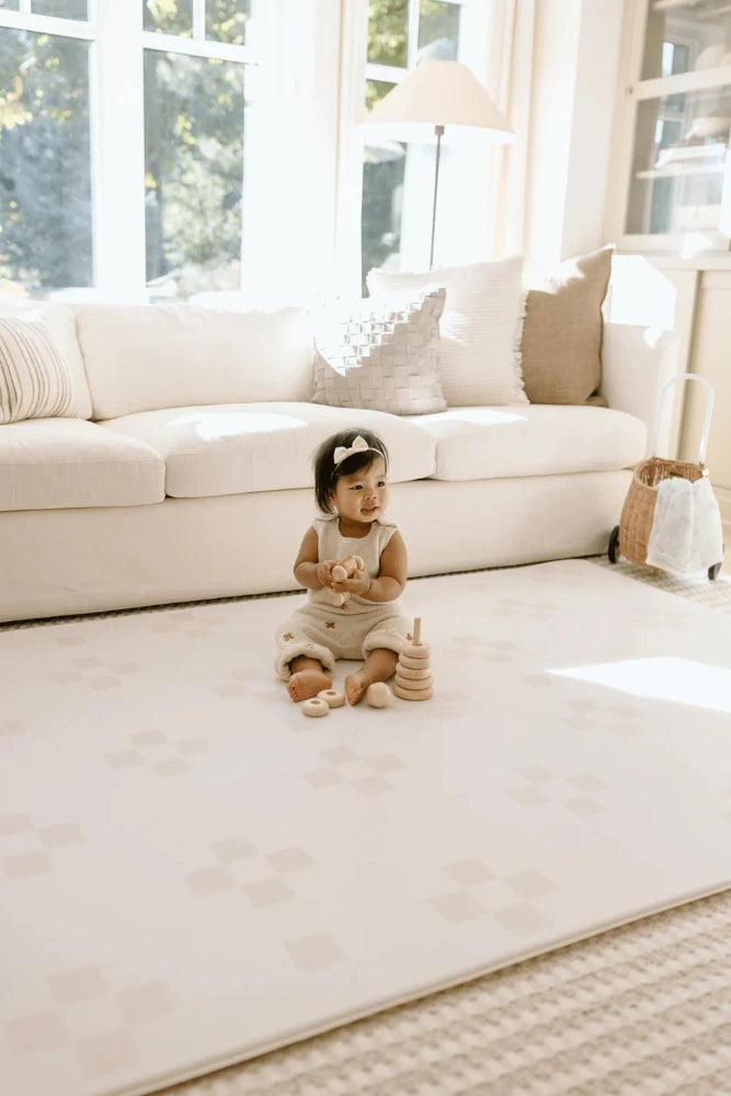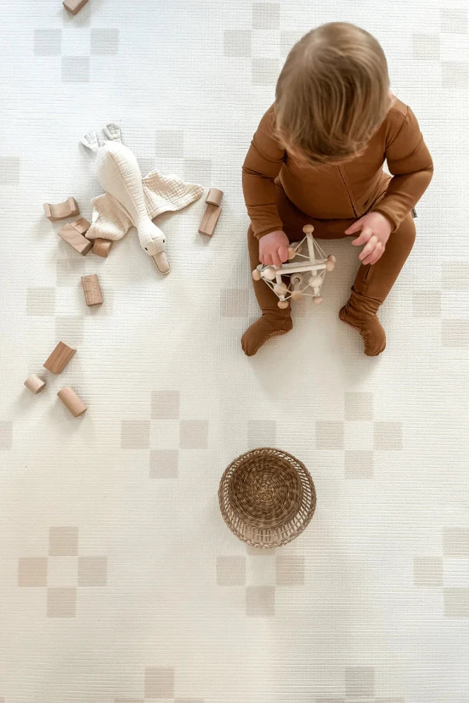 Reversible Padded Play Mat - Taupe Squares & Terrazzo