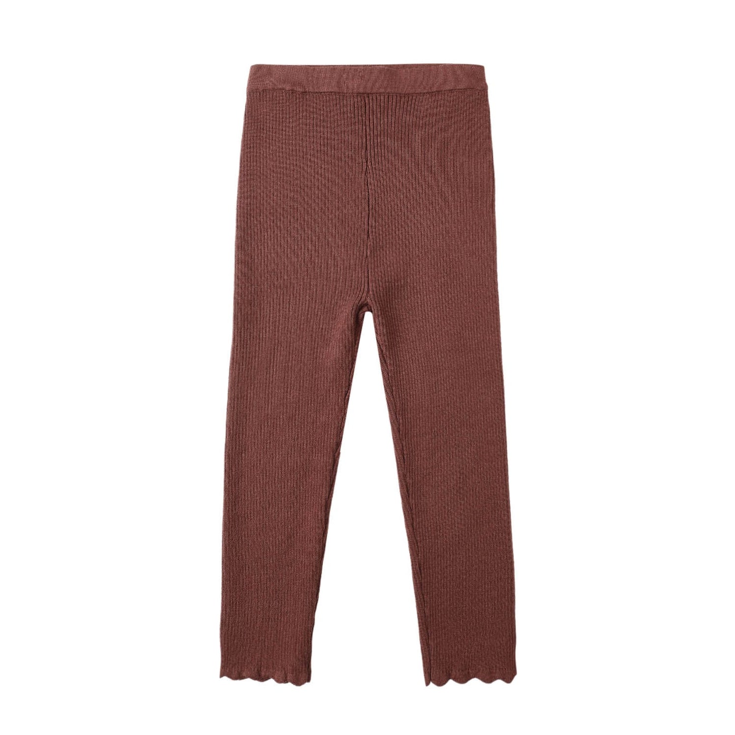 Classic leggings in a super soft ribbed knit, featuring a scalloped edge and an elastic waistband for the perfect fit.