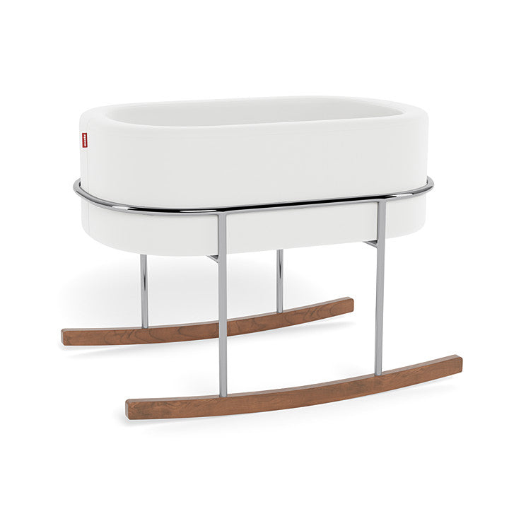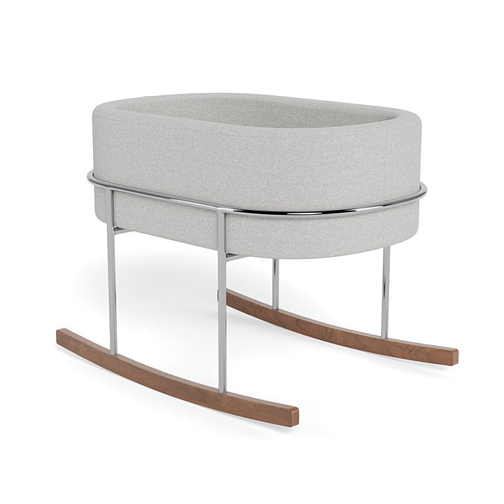 The Rockwell bassinet is synonymous with ultimate modern luxury; it is the perfect combination of beautiful materials and a soothing rock for your little one. Its streamlined chrome stand with solid walnut rocking feet is beautifully contrasted to the soft upholstered basket that can be removed and transported to different rooms in your home (or the Grandparents' home!). When you are finished with the bassinet, the basket alone makes an excellent spot to store all your baby's new stuffies!