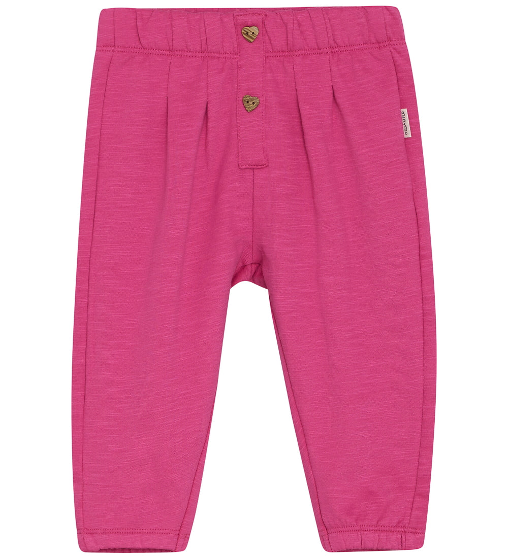 These simple but sweet sweatpants feature front pleats and cute, heart-shaped decorative buttons.