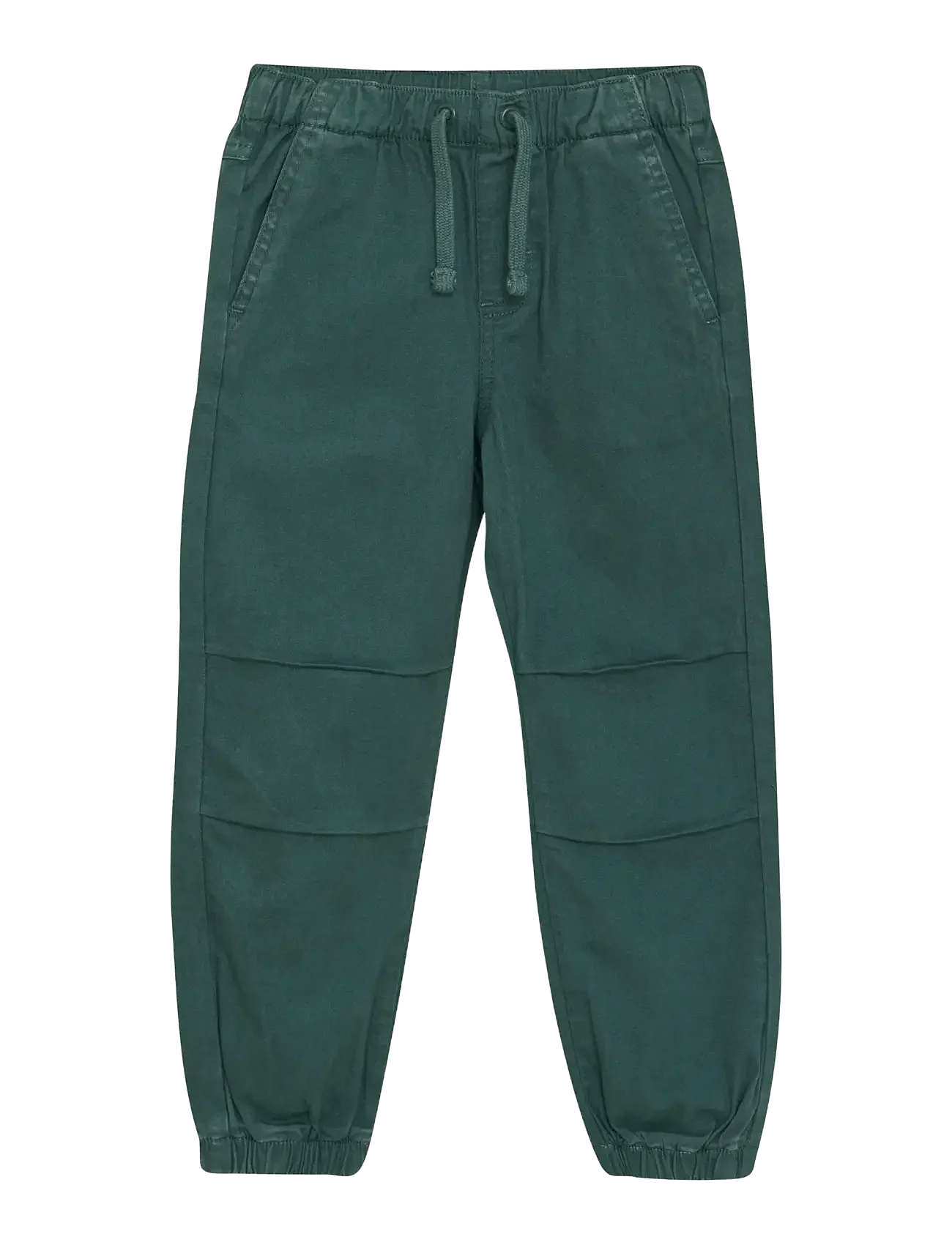 This pair of twill pants from Minymo offers comfort and flexibility with an elastic waistband, adjustable drawstring, and elastic cuffs at the ankles. Crafted from a soft blend of 97% cotton and 3% elastane, these pants feature practical side pockets and a relaxed fit ideal for school or play. Certified by Oeko-tex 100, this style ensures dependable quality and safety for active kids.