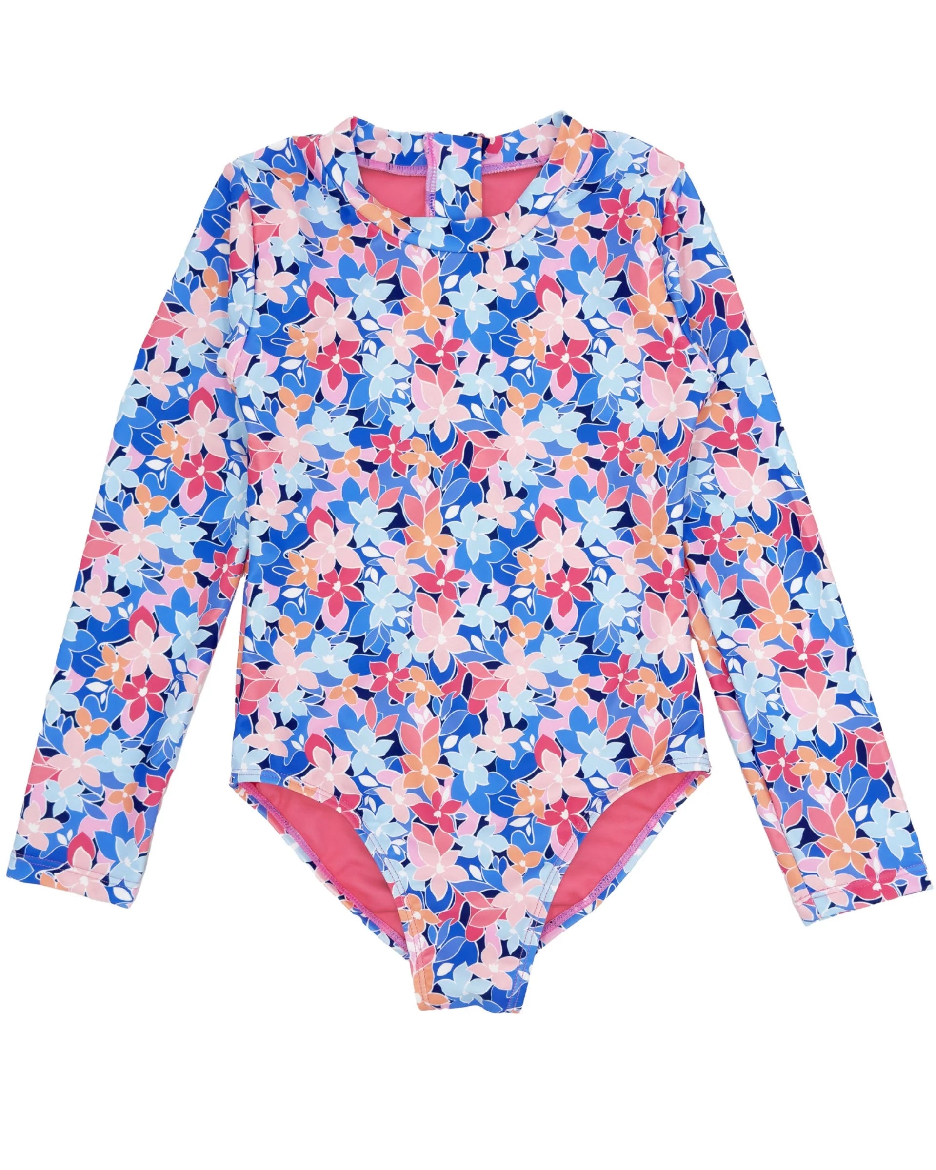 A long sleeve one piece swimsuit for extra sun protection. This surf suit is lined for top support, has full bum coverage, and an easy pull tab zipper at back.